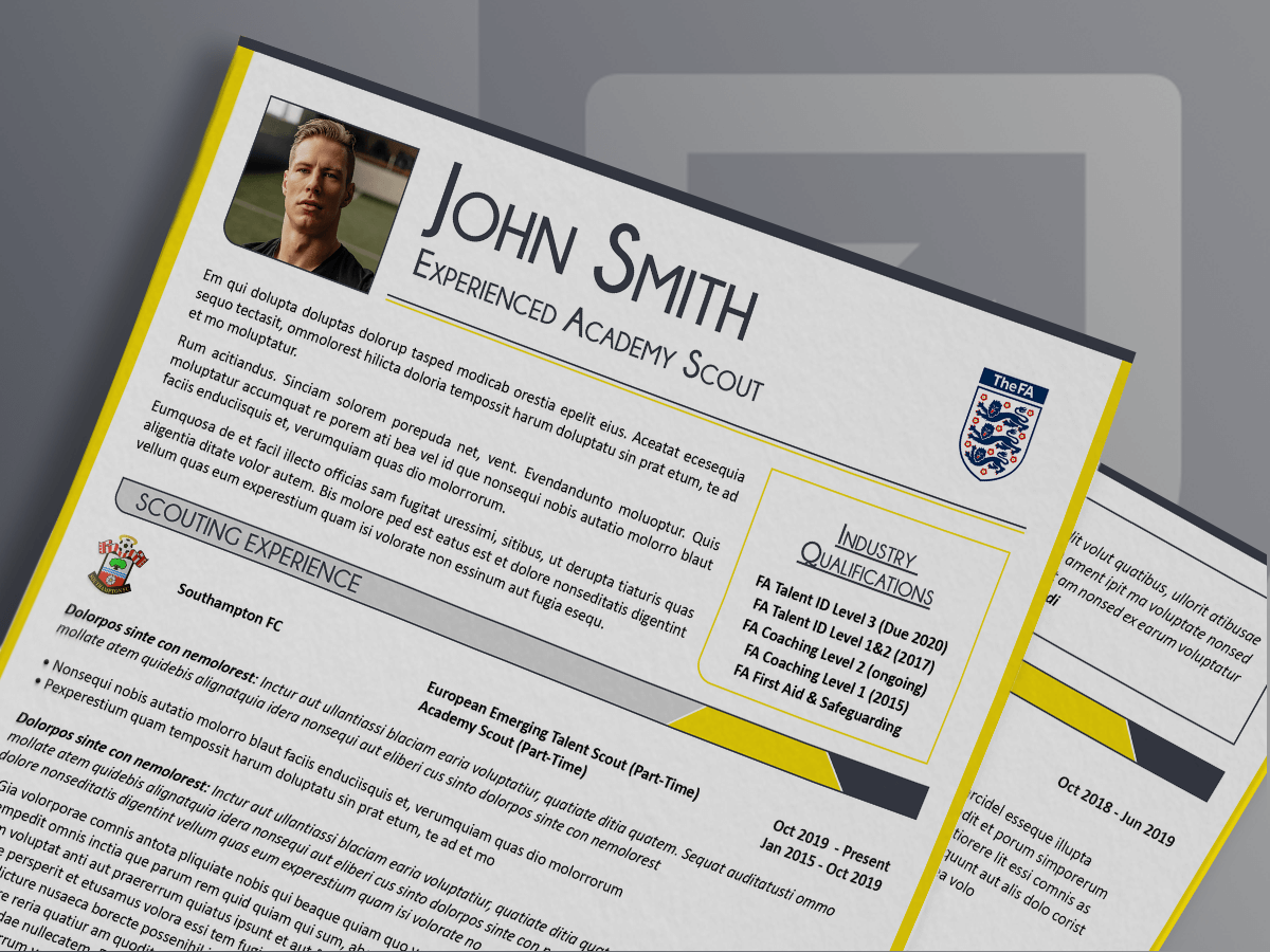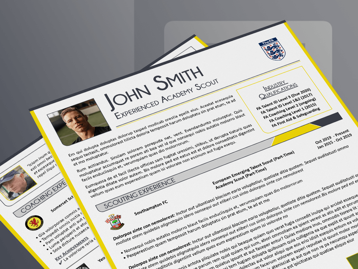 Football Careers will provide you with a first draft of your graphically designed CV within five working days of your initial consultation with us. We’ll incorporate your feedback on your first draft and work with you until you’re completely happy with the content and style of your CV.